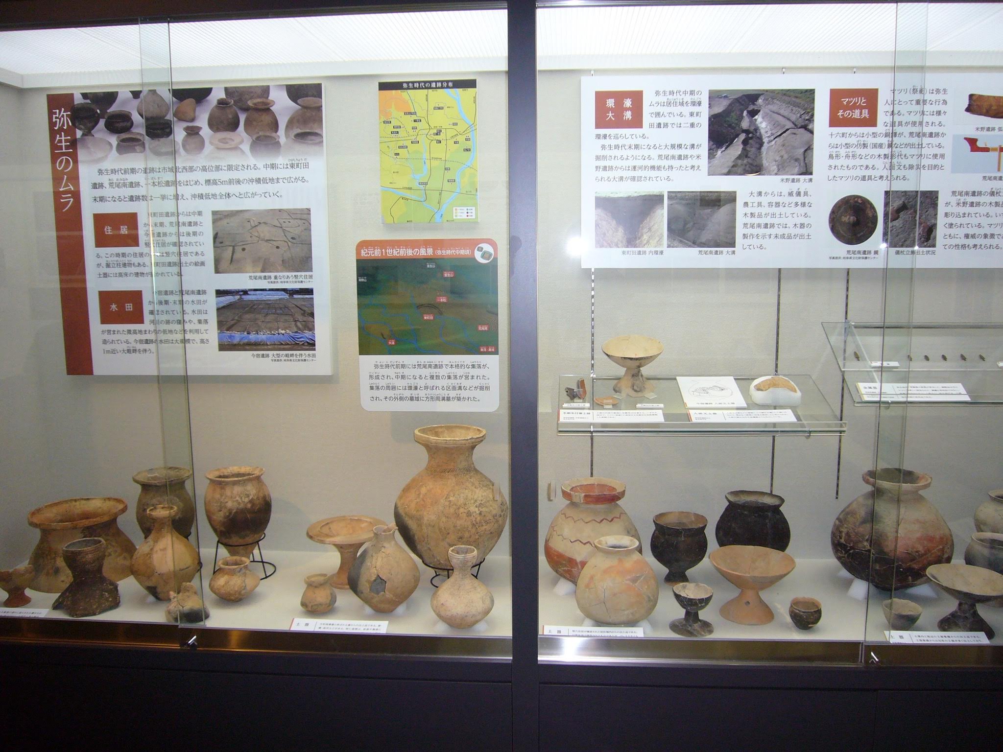 美濃国分寺周辺の遺跡から出土した弥生式土器の数々