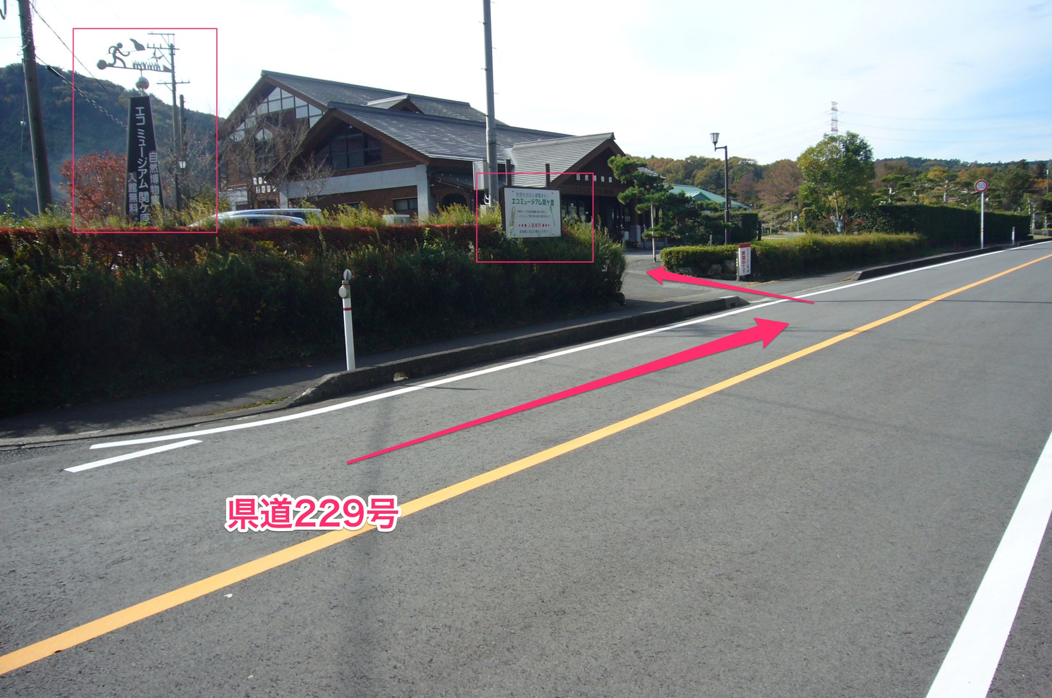 県道229号を真っ直ぐ進むと、「エコミュージアム関ケ原」の看板が見え、そこを左折します